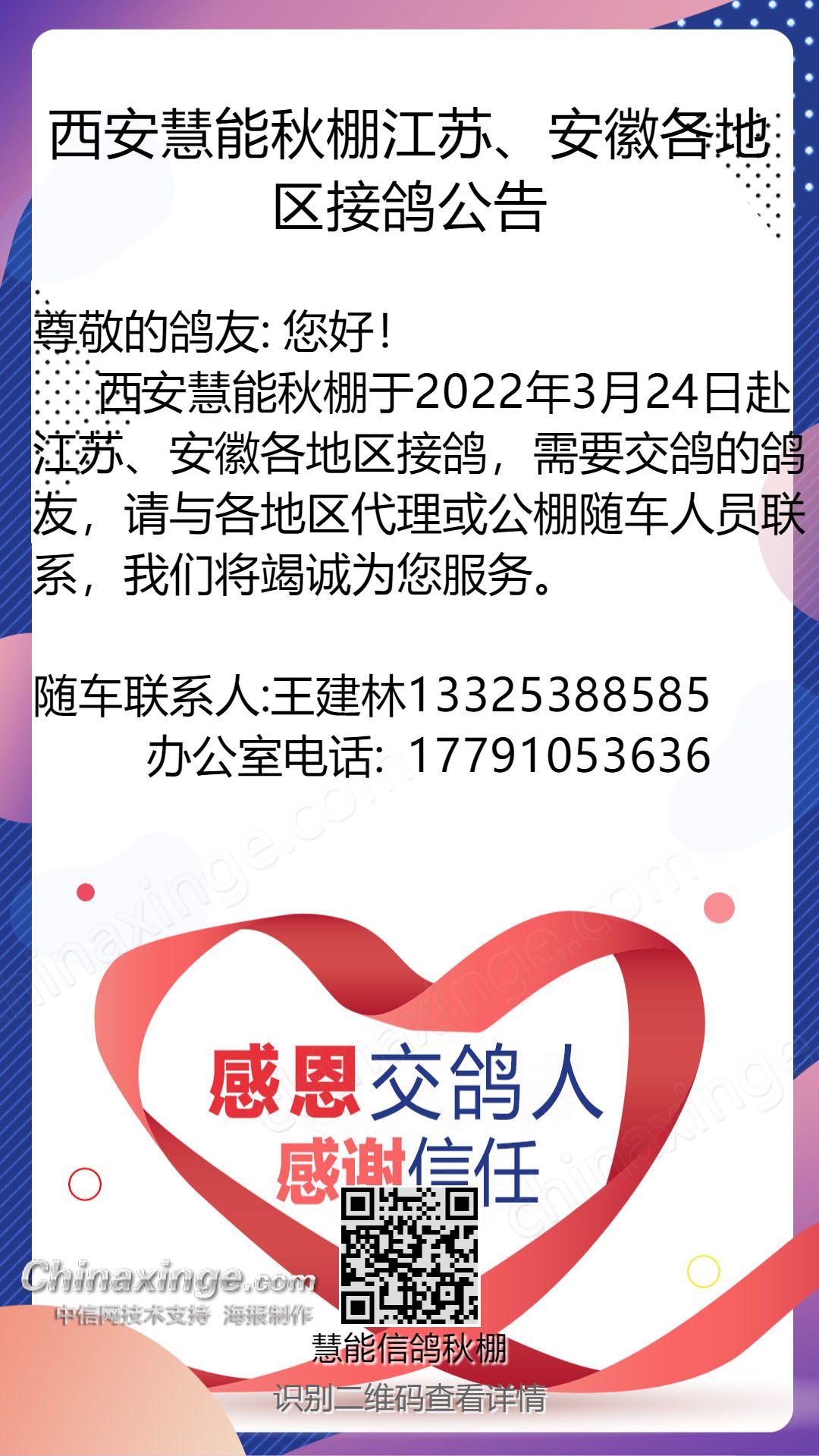 西安慧能秋棚江苏、安徽各地区接鸽公告