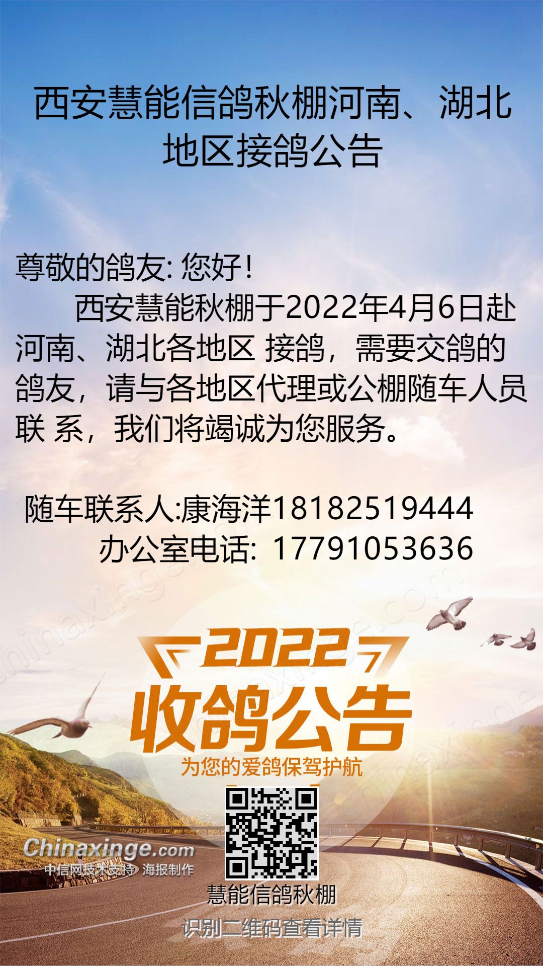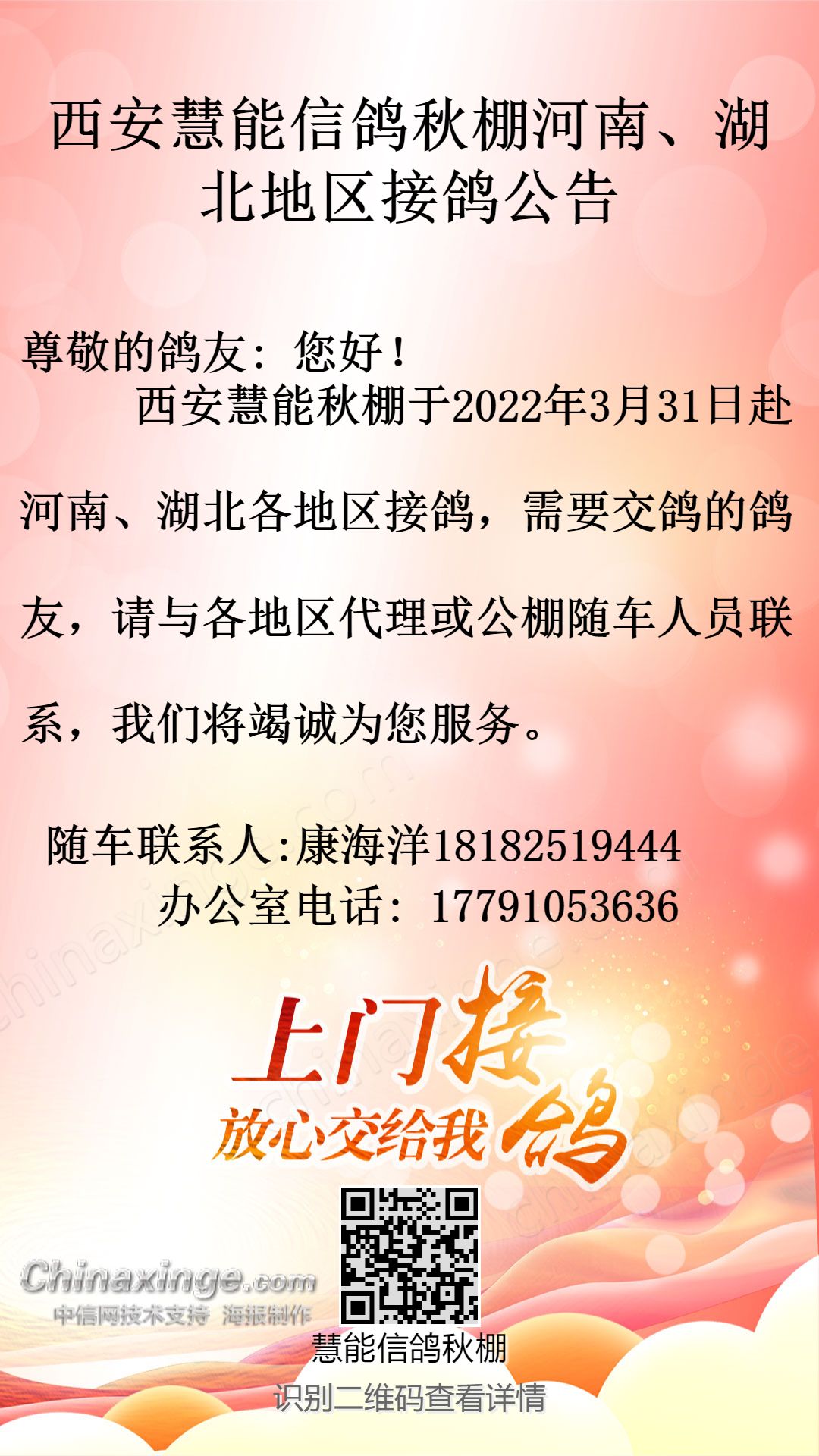 西安慧能信鸽秋棚河南、湖北地区接鸽公告