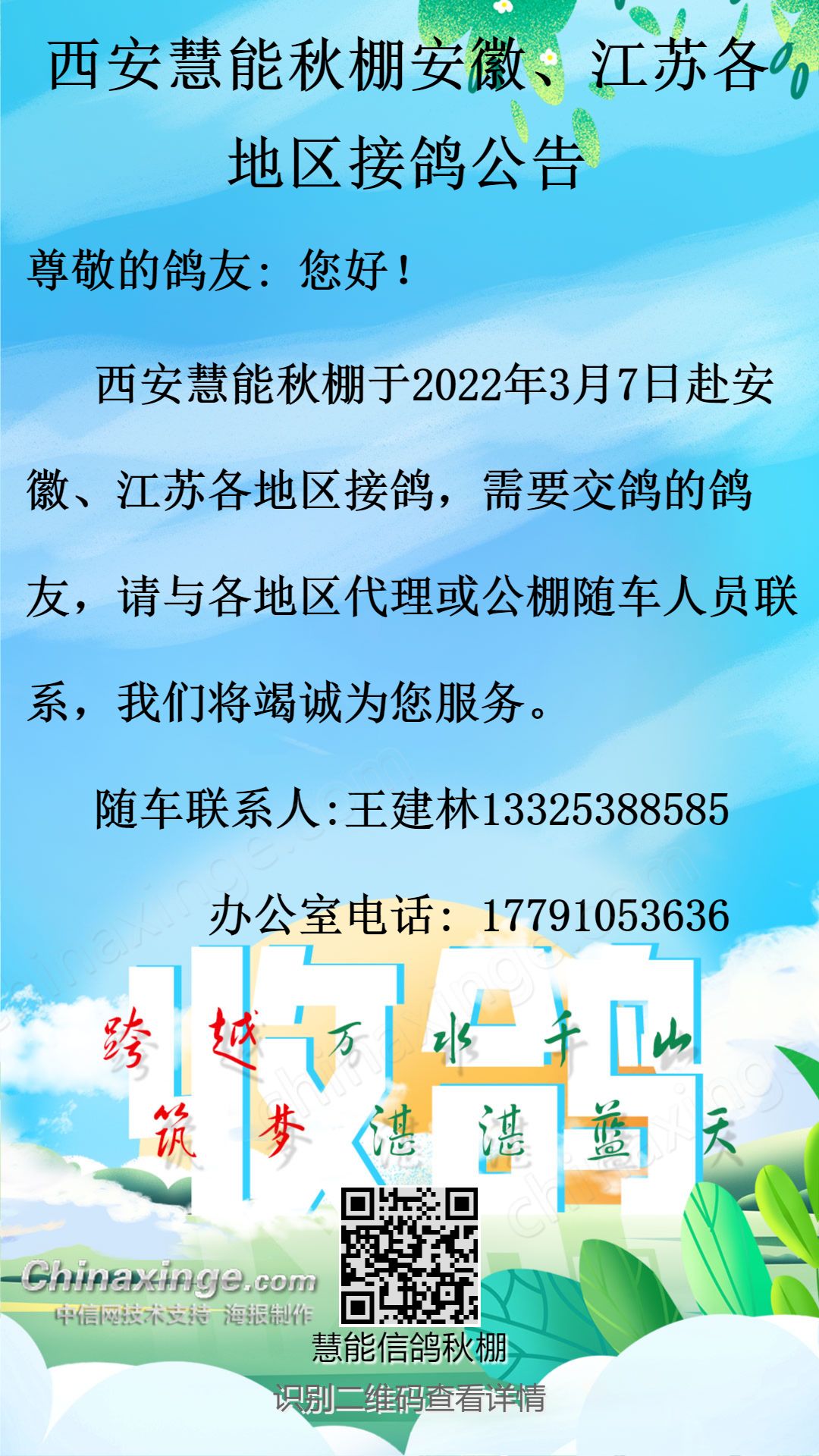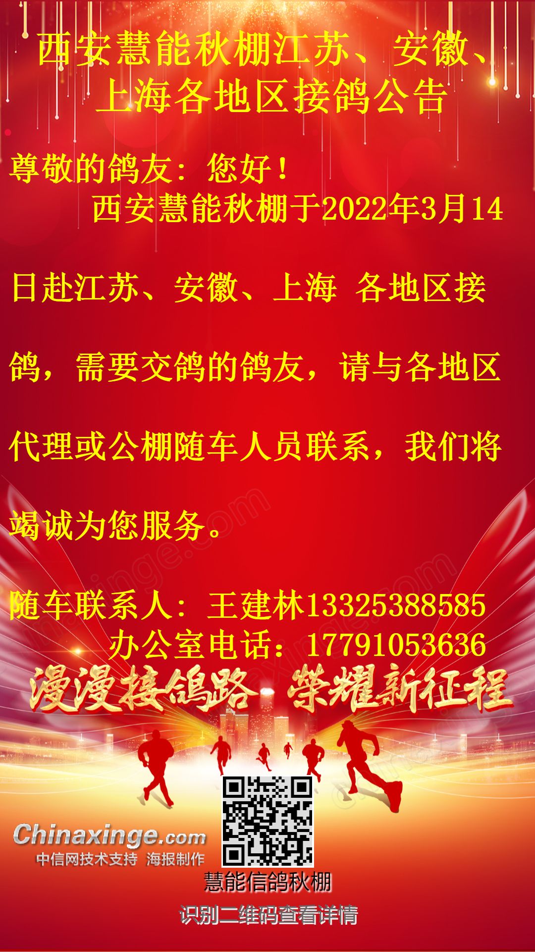 西安慧能秋棚江苏、安徽、上海各地区接鸽公告