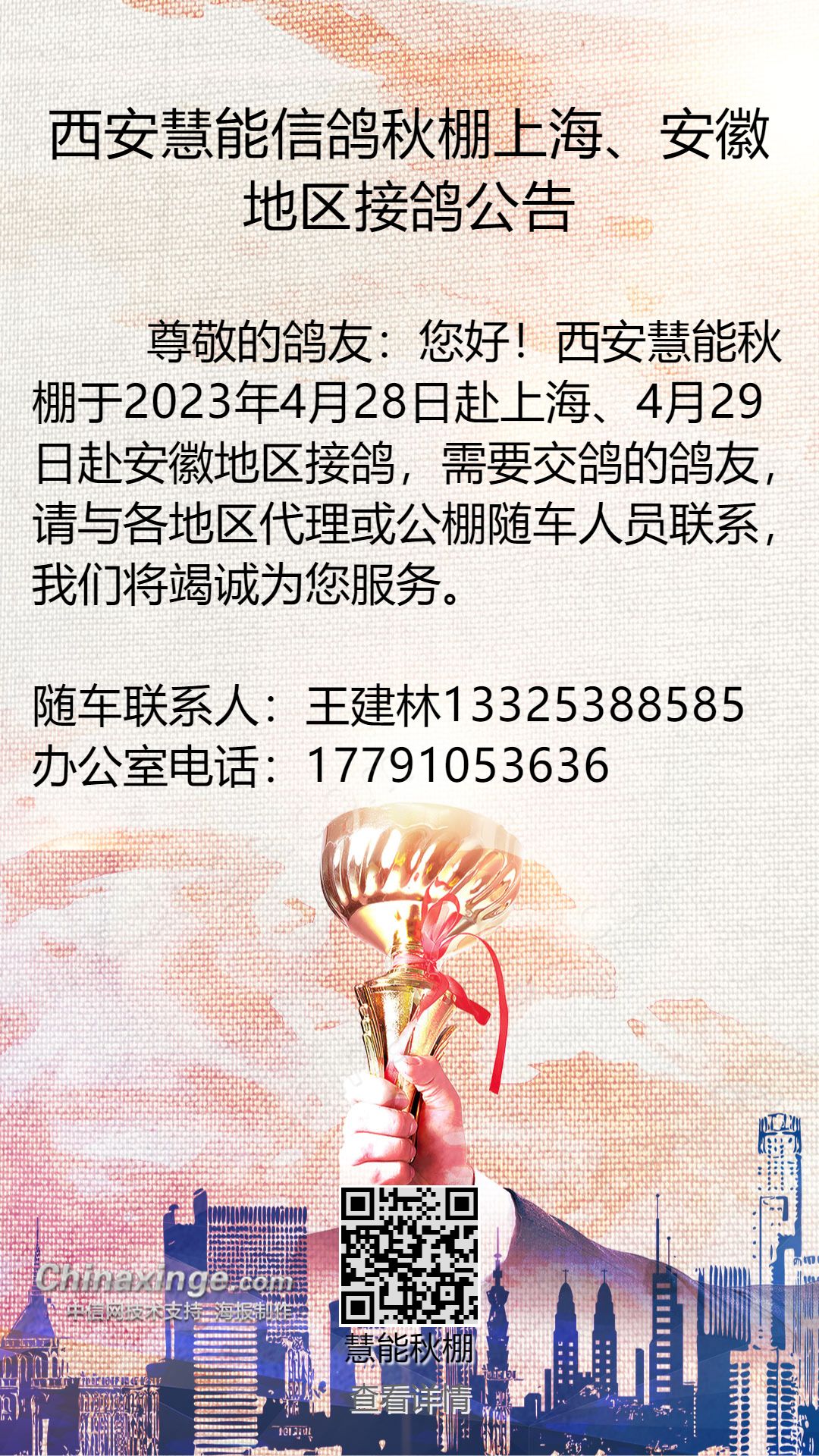 西安慧能信鸽秋棚上海、安徽地区接鸽公告