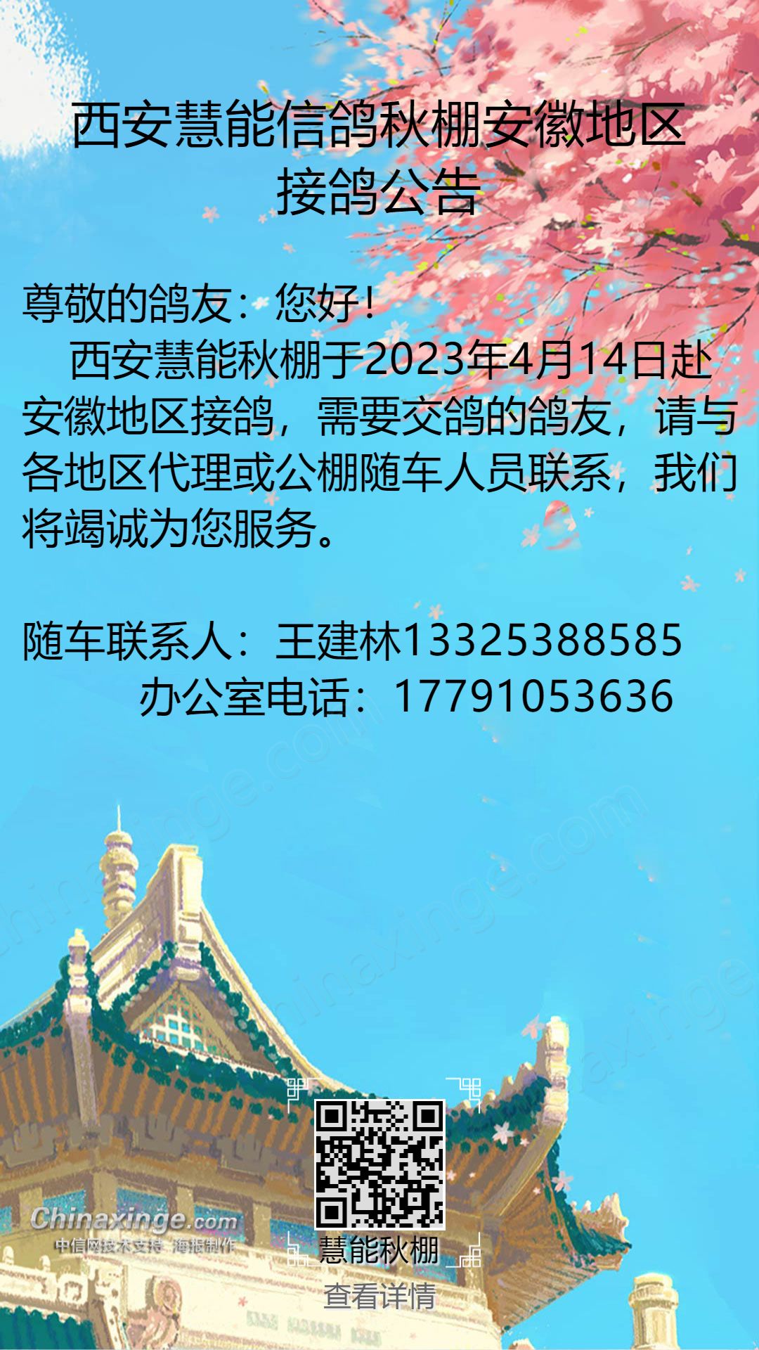 西安慧能信鸽秋棚安徽地区 接鸽公告