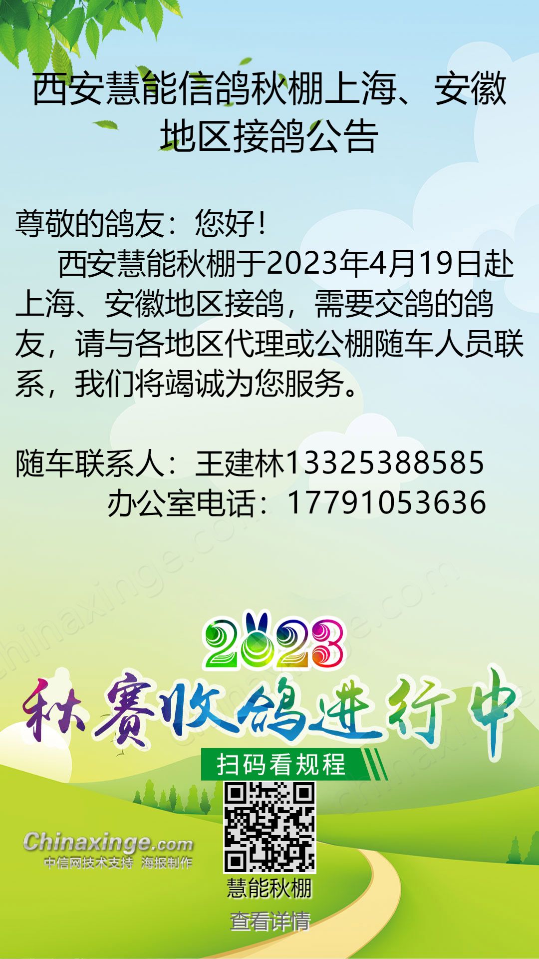 西安慧能信鸽秋棚上海、安徽地区接鸽公告