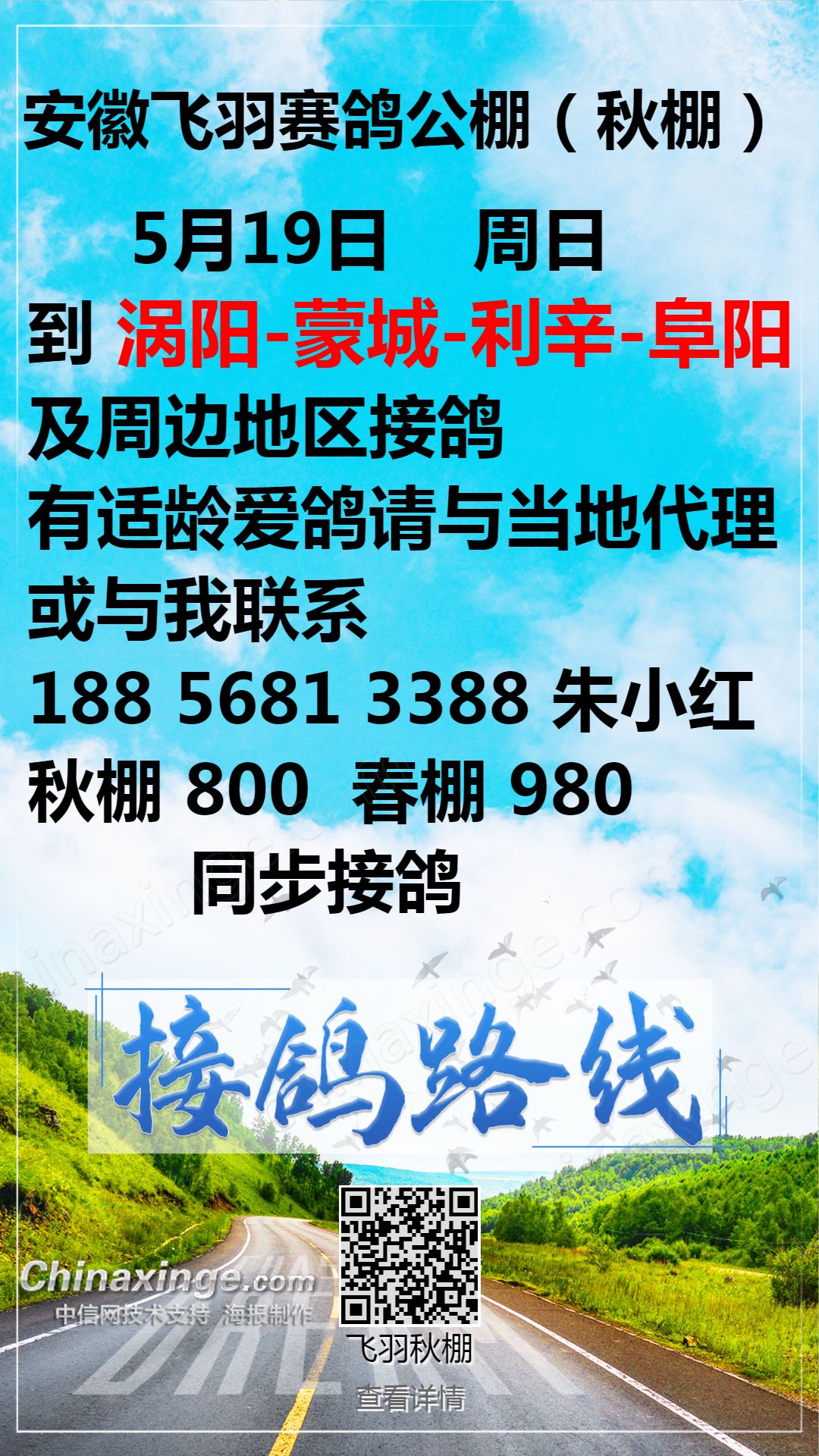 安徽飞羽赛鸽俱乐部:5月17日接鸽公告