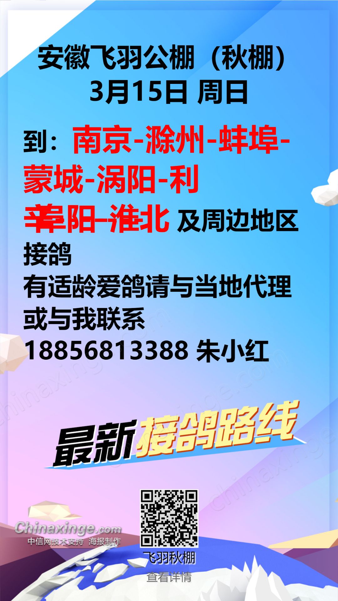 安徽飞羽公棚(秋) :3月15日 周日 接鸽公告