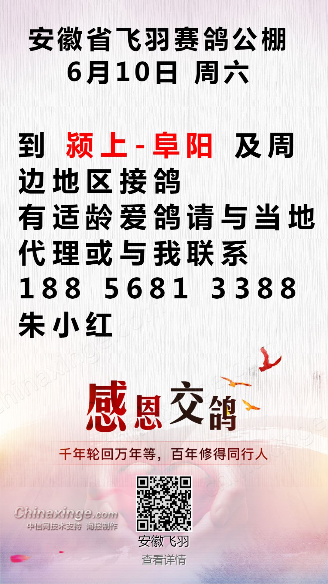 安徽飞羽公棚:6月10日接鸽公告