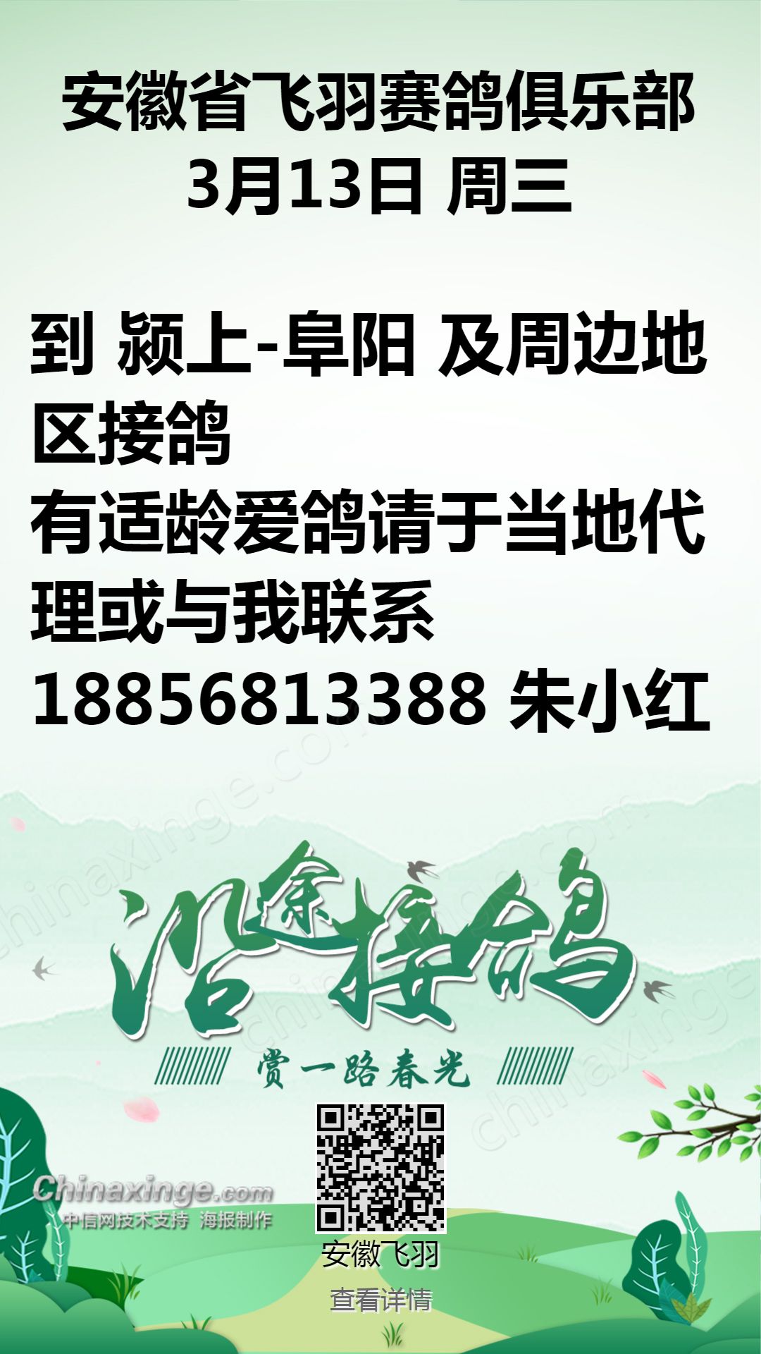 安徽飞羽俱乐部:3月13日接鸽公告