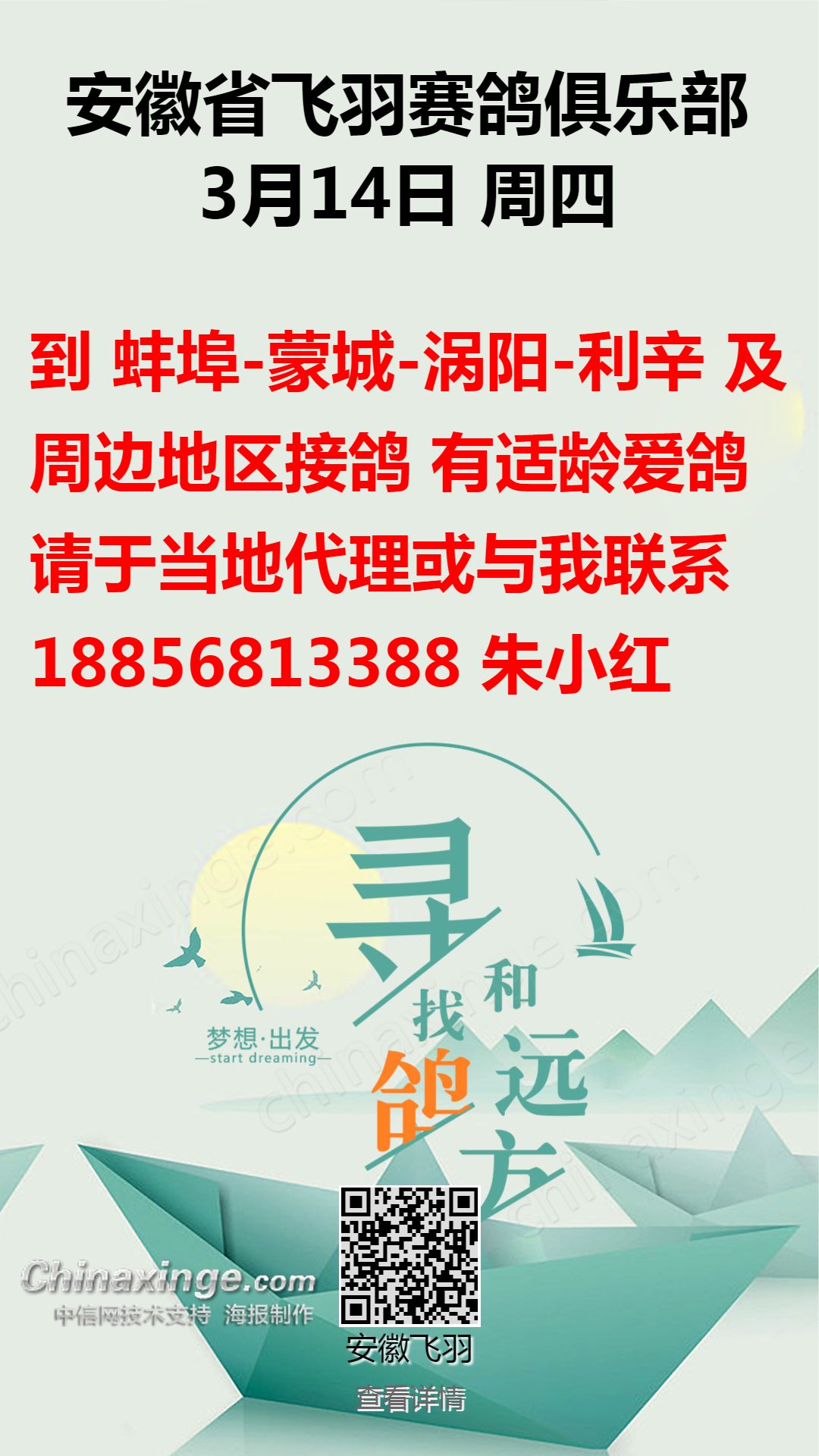 安徽飞羽俱乐部:3月14日接鸽公告