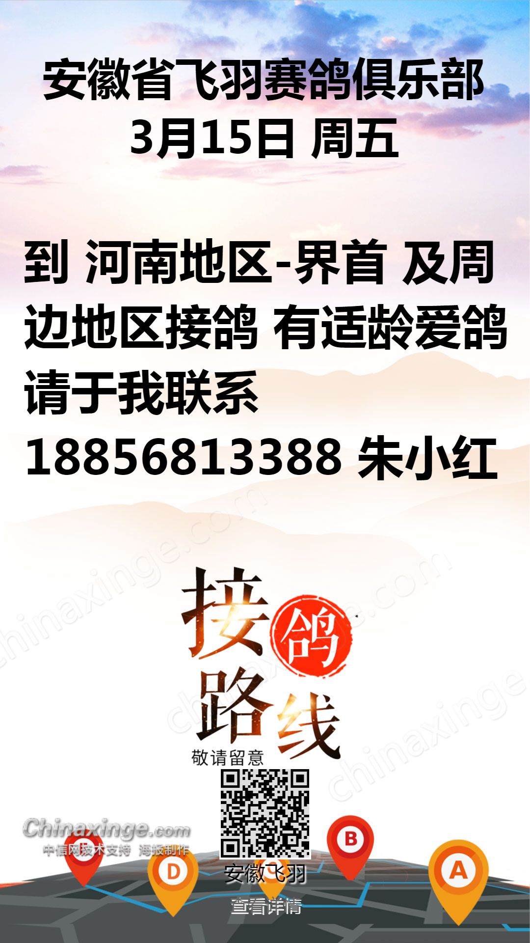 安徽飞羽公棚:2月28日接鸽路线
