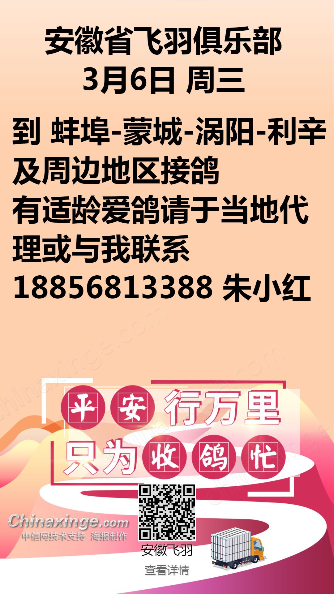 安徽飞羽俱乐部:3月6日接鸽公告
