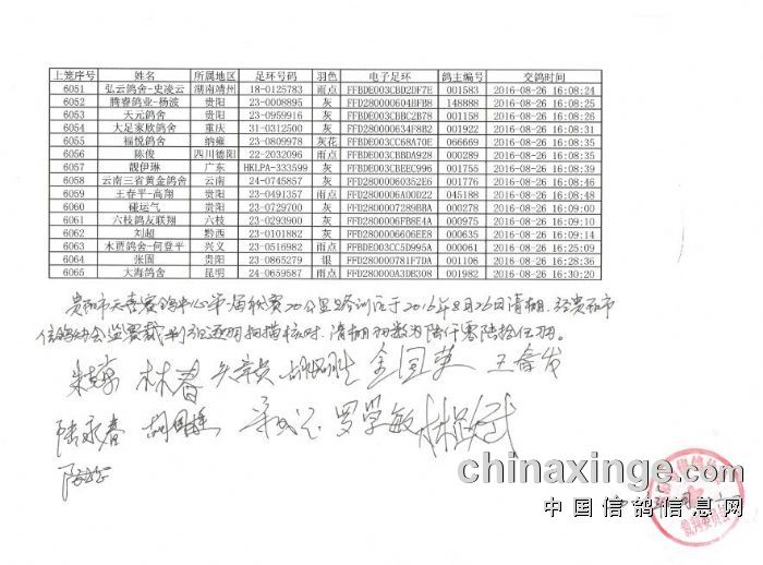 贵阳天喜赛鸽中心20公里清棚及裁判盖章图