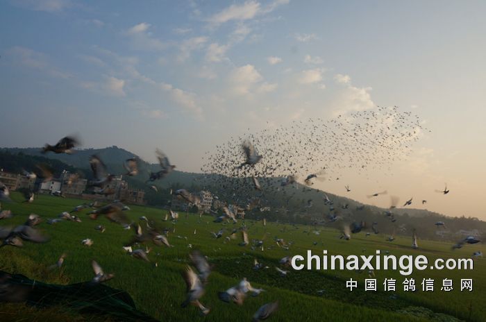 广东五华皓天赛鸽中心第七站(约30公里)训放开笼、归巢图片