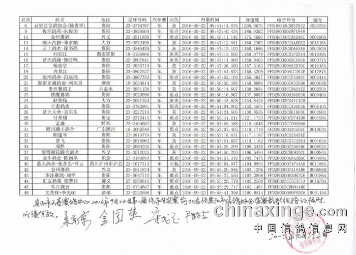 贵阳天喜赛鸽中心第一关汽车大奖赛获奖名单