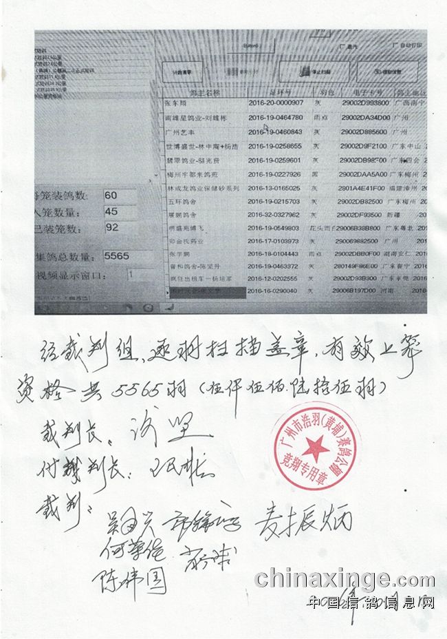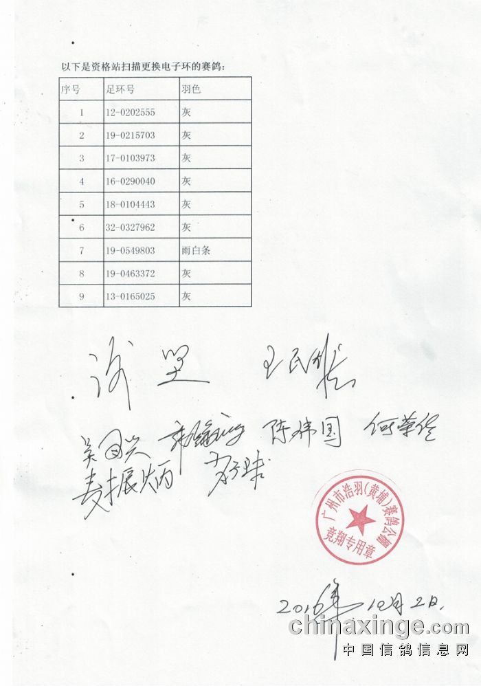 广州浩羽(黄埔)公棚第一关热身赛集鸽扫描清单(8632羽)