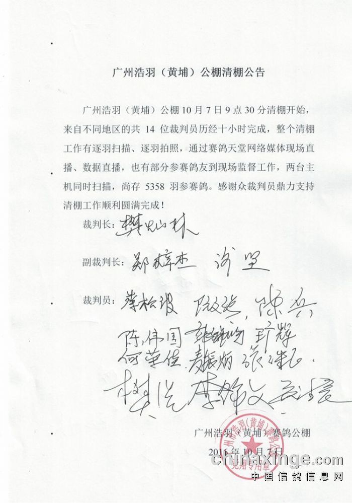 广州浩羽(黄埔)公棚第一关热身赛集鸽扫描清单(8632羽)
