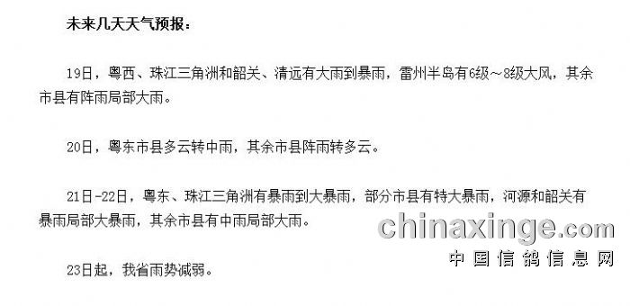 广州浩羽(黄埔)公棚原定于10月20日进行的清棚后正式训放,因双台风“莎莉嘉”“海马”较大可能正面袭击广东,并造成严重风雨影响,故训放日期延后,具体时间待定。