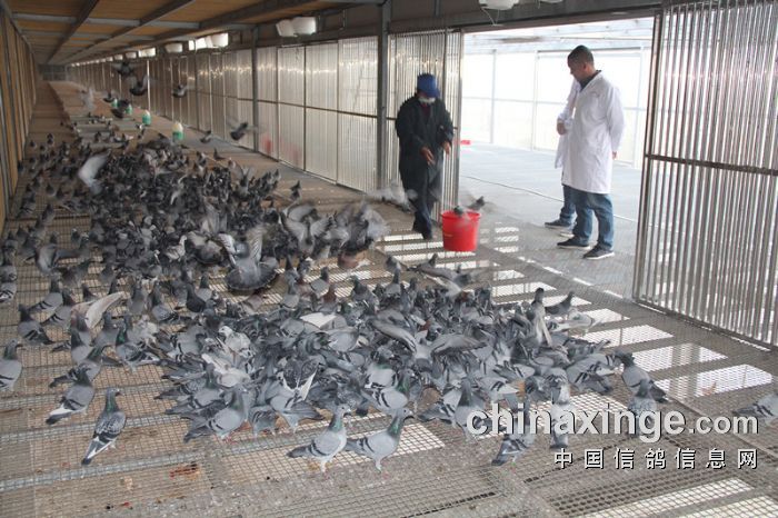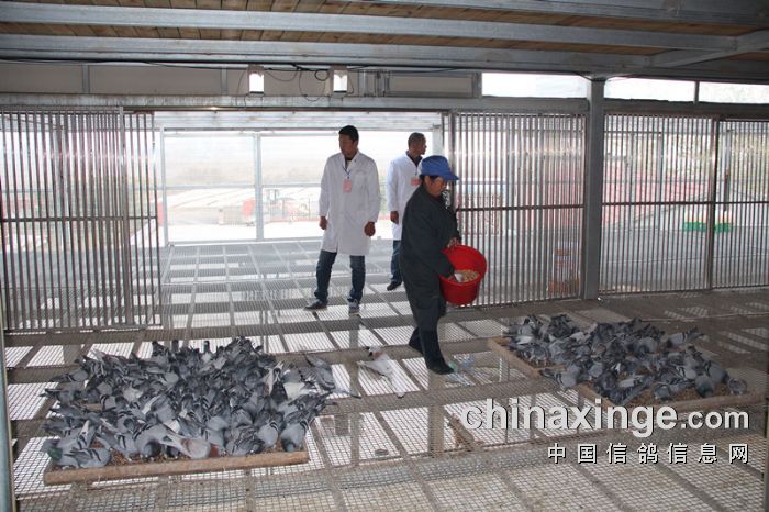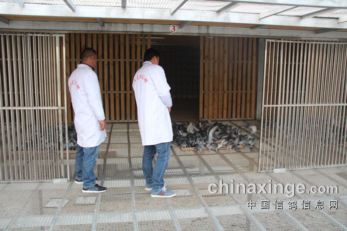 监赛鸽友查看赛鸽饮食饮水情况