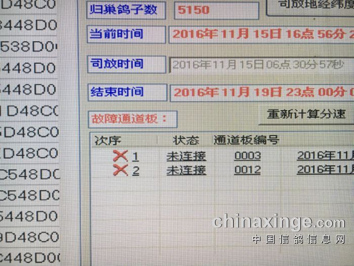 由于北京科汇公司网络故障,无法上传数据直播13公里训放,截止到2016年11月15日17点整共计扫描数据为5150羽!