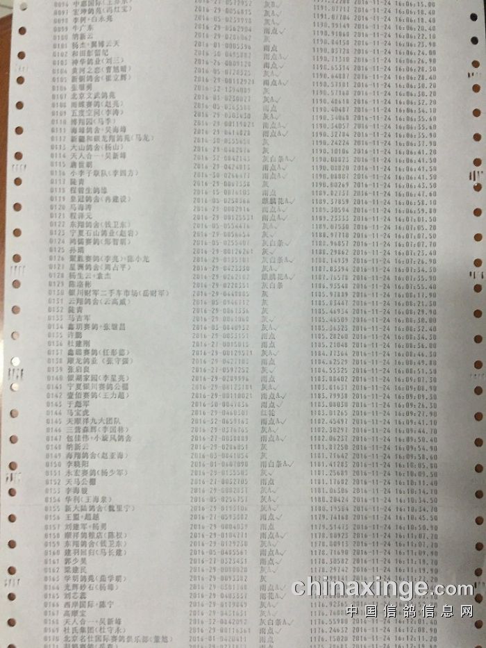 宁夏黄河赛鸽公棚双关鸽王加关赛106-120名赏析