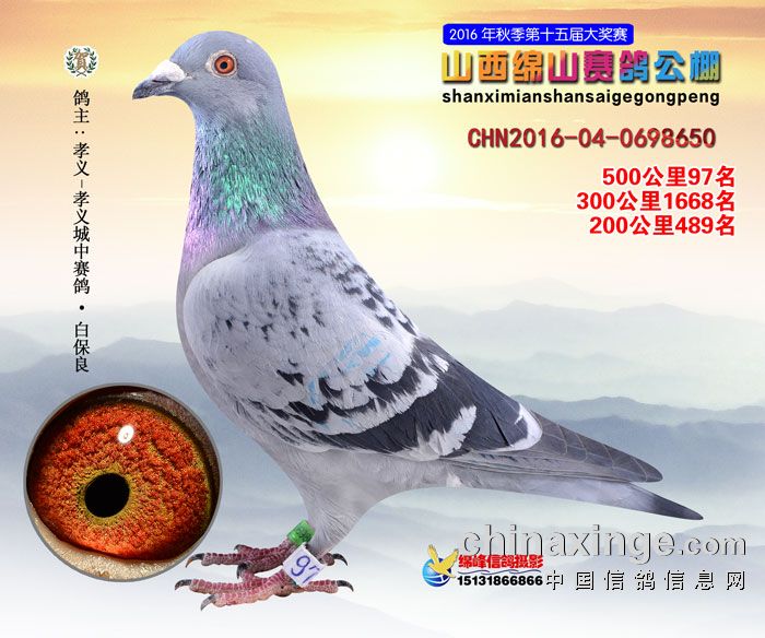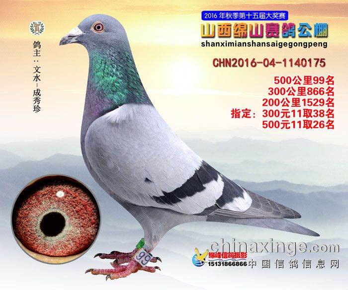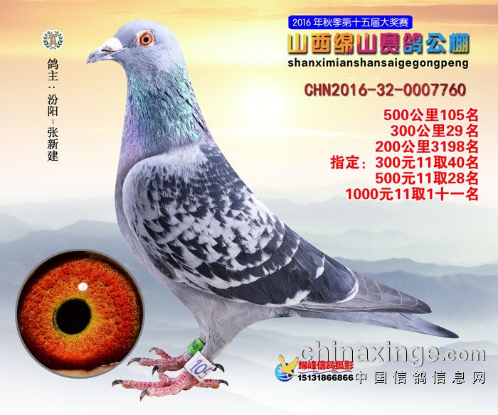 16年绵山赛鸽公棚奖鸽欣赏(91-105名)