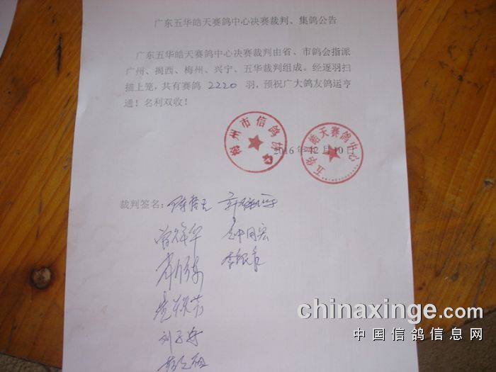 广东五华皓天赛鸽中心增加赛不参赛名单