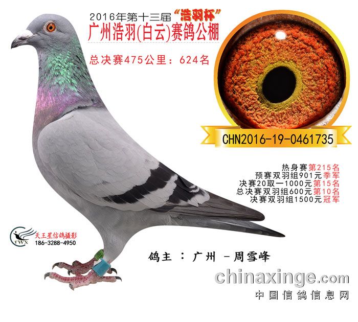 16年秋广州市浩羽(白云)赛鸽公棚获奖鸽欣赏621-625名