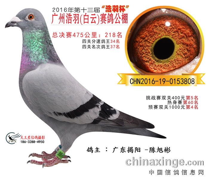 16年秋广州市浩羽(白云)赛鸽公棚获奖鸽欣赏216-220名