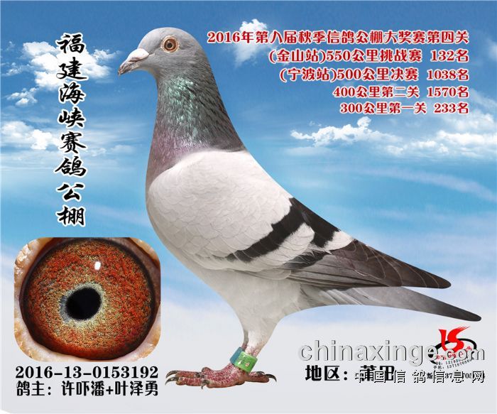 2016年550公里挑战赛获奖鸽129名-146名靓影