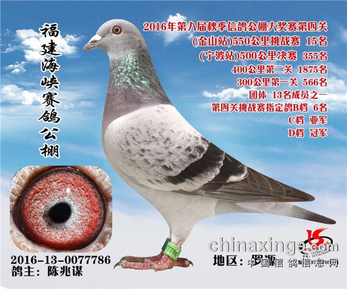2016年550公里挑战赛获奖鸽15名-29名靓影