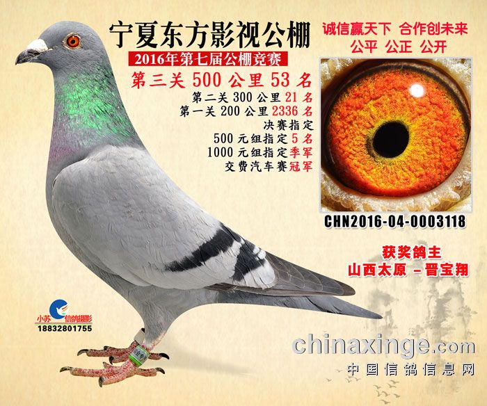 16年秋宁夏东方影视赛鸽公棚奖鸽欣赏(501名)