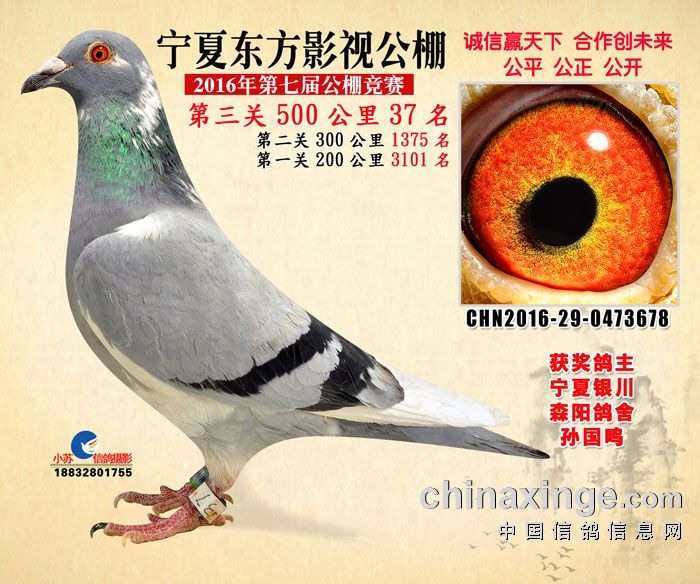 16年秋宁夏东方影视赛鸽公棚奖鸽欣赏(501名)