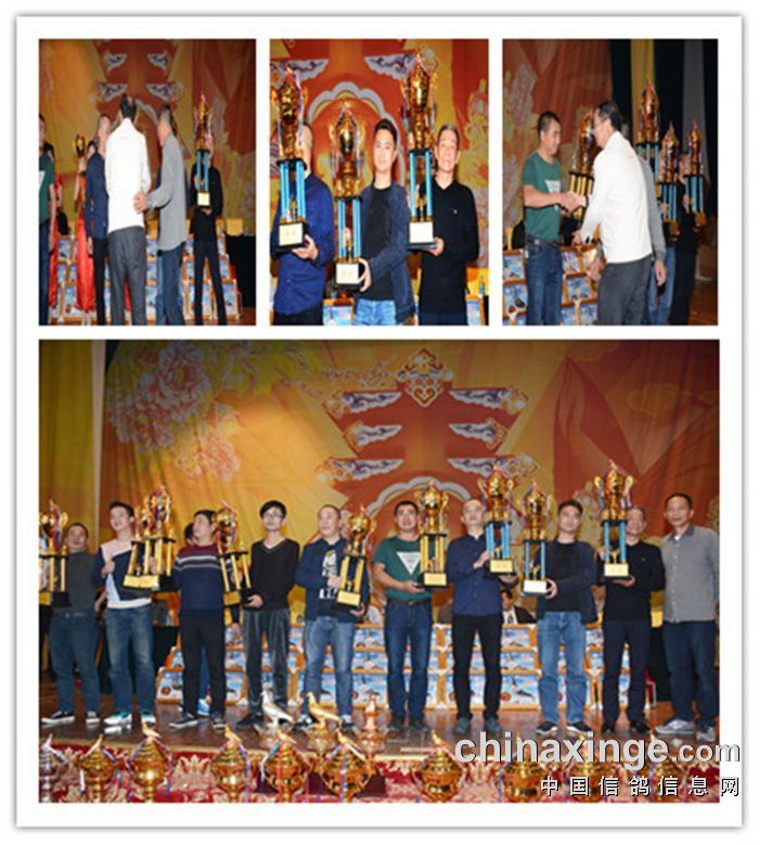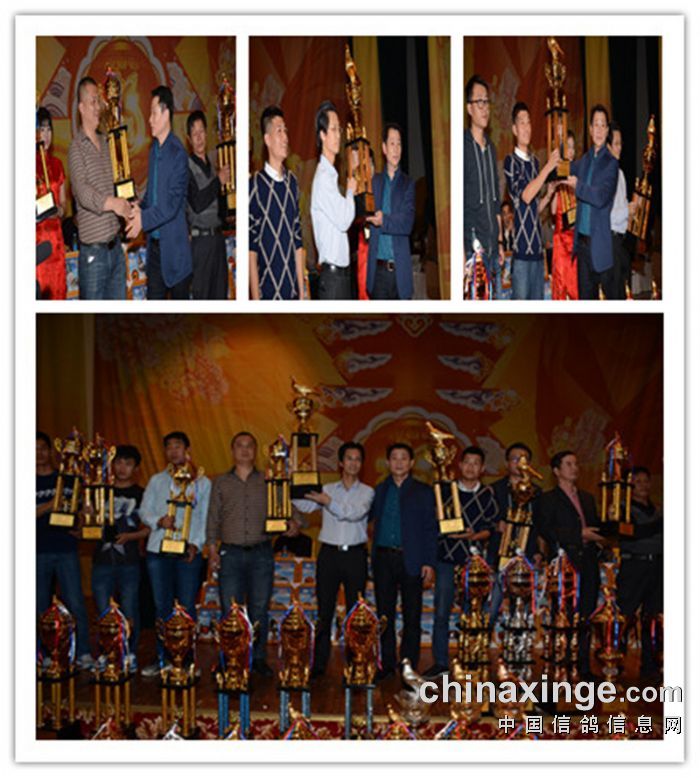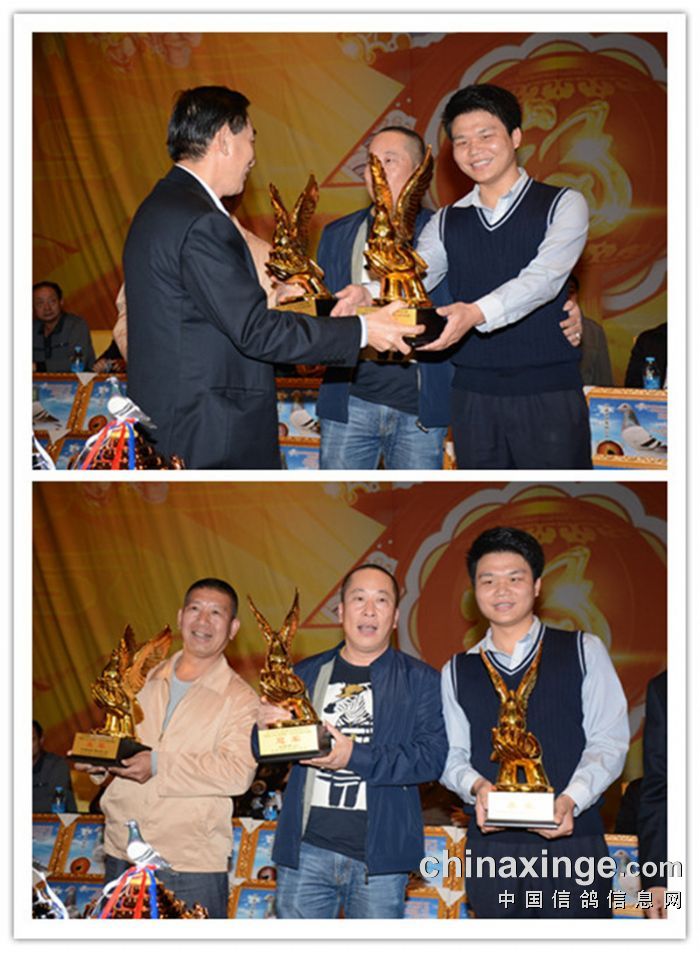 6、由与会嘉宾分别为福建海峡赛鸽公棚2016年第一关(300公里)前三名、第二关(400公里)前三名、第三关(决赛 500公里)前十名、第四关(挑战赛 550公里)B组前十名、决赛团体前十名、三关鸽王前十名、三关精英挑战赛前五名、免费汽车赛前五名获奖鸽友颁发奖杯、奖金及奖牌。