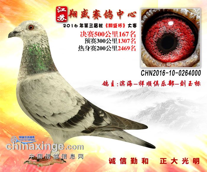 16年江苏翔盛公棚决赛获奖鸽欣赏166-170名