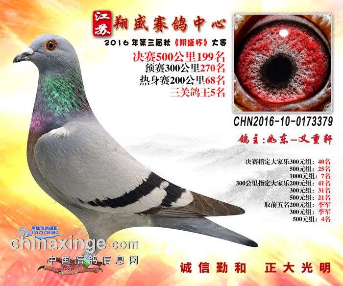 16年江苏翔盛公棚决赛获奖鸽欣赏196-200名
