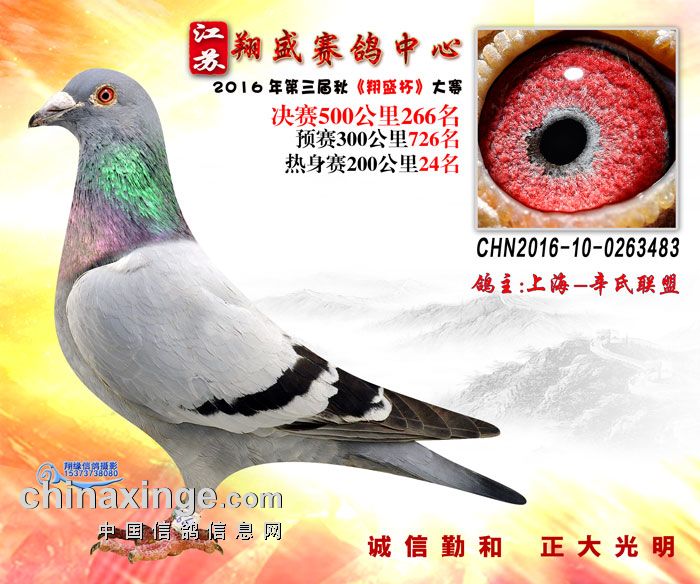16年江苏翔盛公棚决赛获奖鸽欣赏266-270名