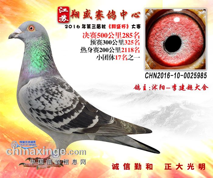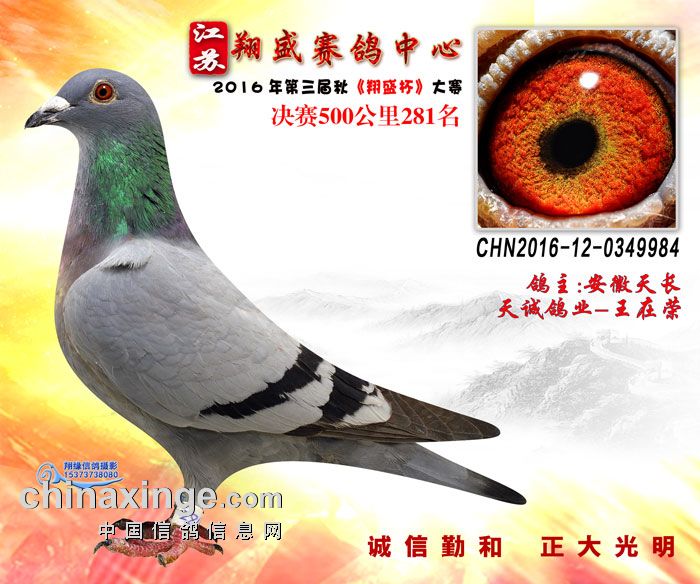 16年江苏翔盛公棚决赛获奖鸽欣赏281-285名