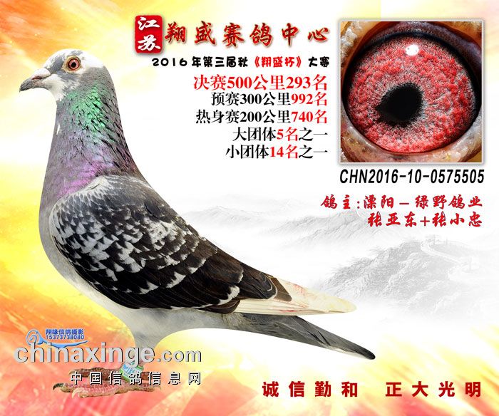 16年江苏翔盛公棚决赛获奖鸽欣赏291-295名