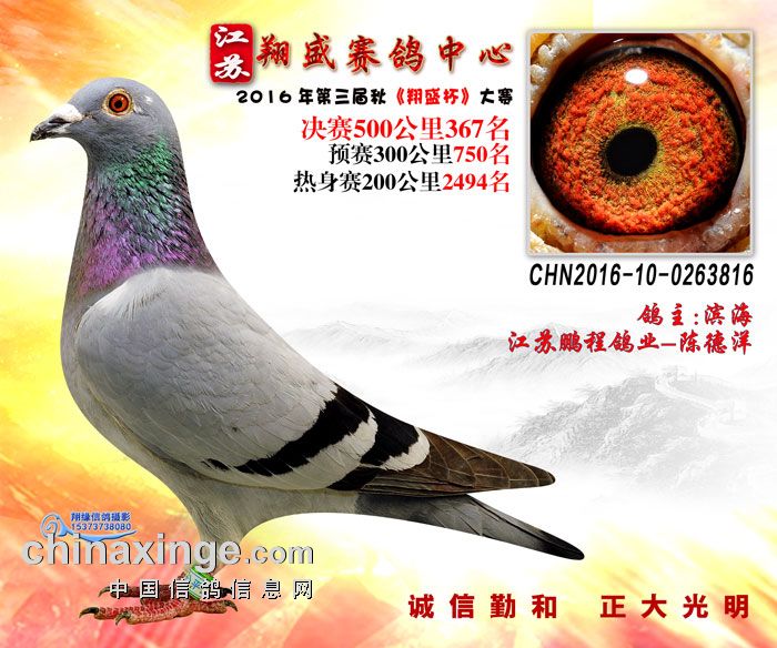 16年江苏翔盛公棚决赛获奖鸽欣赏366-370名