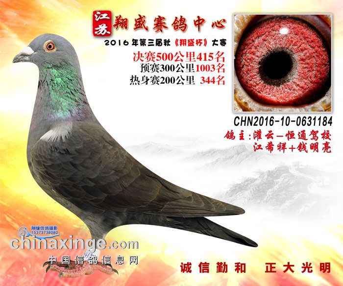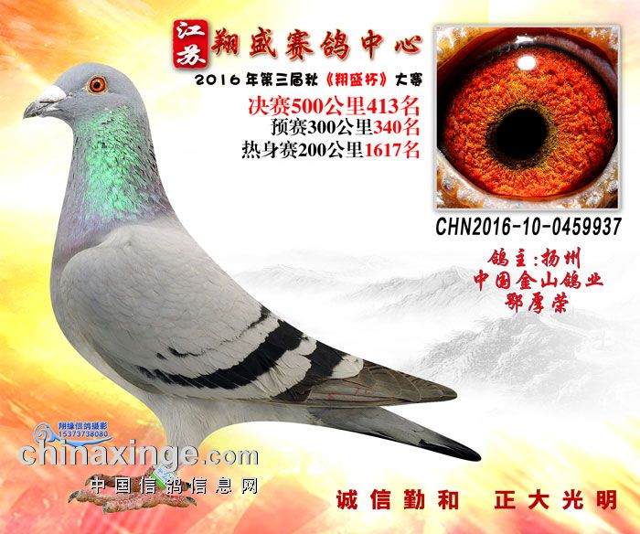 16年江苏翔盛公棚决赛获奖鸽欣赏411-415名