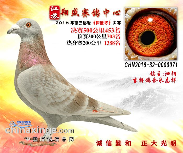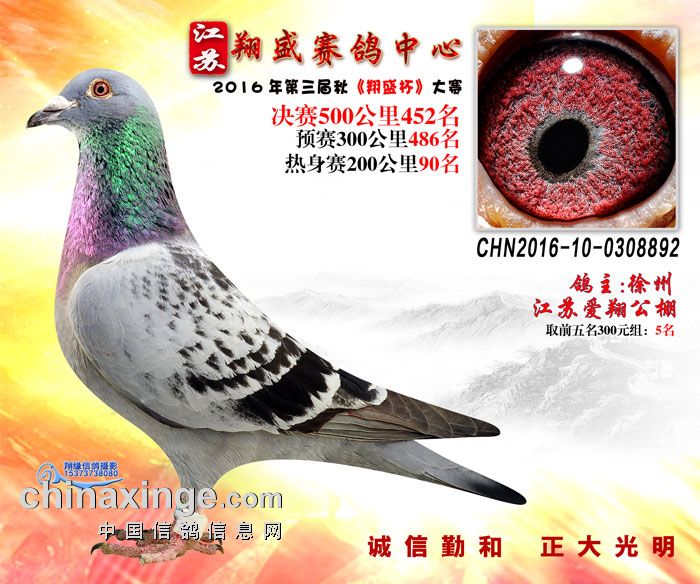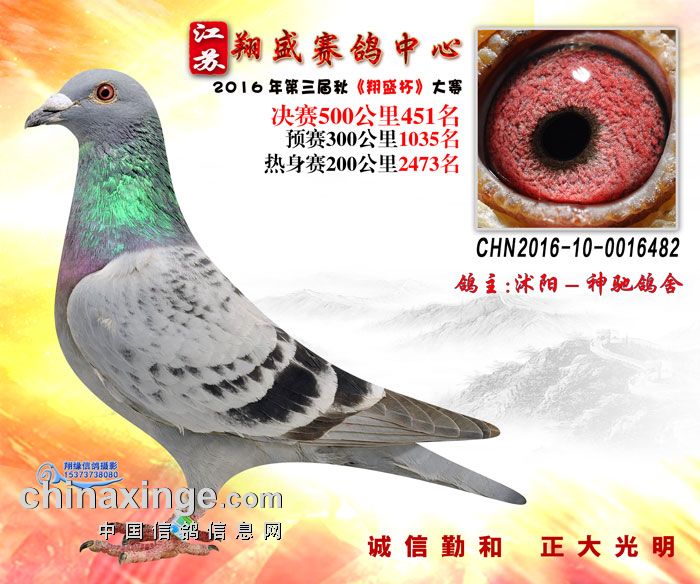 16年江苏翔盛公棚决赛获奖鸽欣赏451-455名