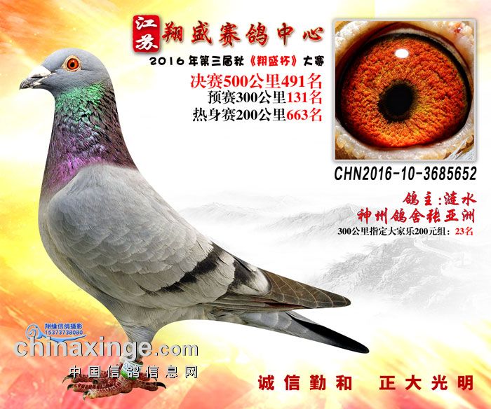 16年江苏翔盛公棚决赛获奖鸽欣赏491-495名