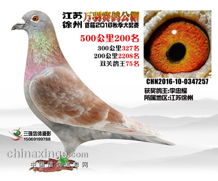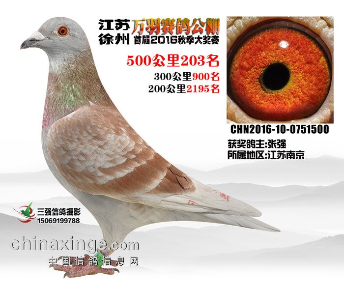 2016年秋江苏徐州万羽赛鸽公棚500公里决赛(196-210名)
