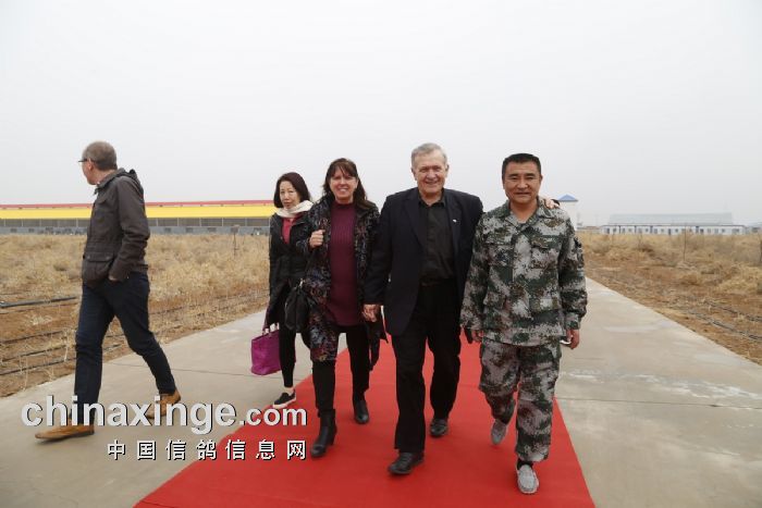 2017年3月20日,国际鸽联主席依斯特凡·巴窦斯携夫人霍瓦泽·阿戈尼斯、匈牙利信鸽协会秘书长佩托·阿提拉、中国信鸽协会秘书长邢小泉先生、中国首席信鸽专家黄剑先生莅临宁夏黄河赛鸽公棚参观指导!(1)