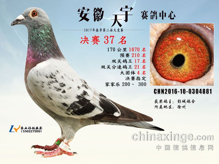 2017春安徽天宇赛鸽中心获奖鸽欣赏(36-40名)