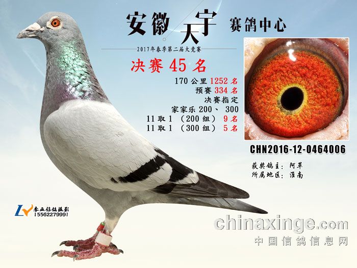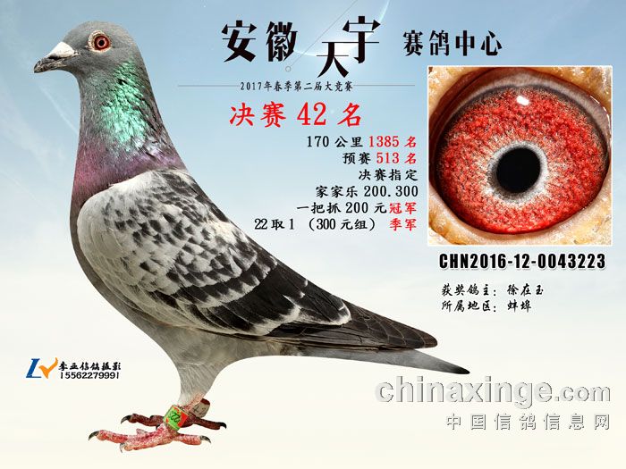 2017春安徽天宇赛鸽中心获奖鸽欣赏(41-45名)