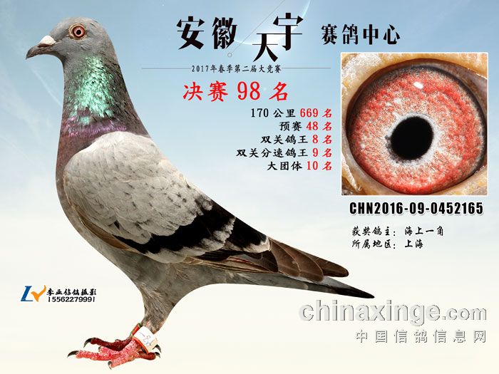 2017春安徽天宇赛鸽中心获奖鸽欣赏(96-100名)