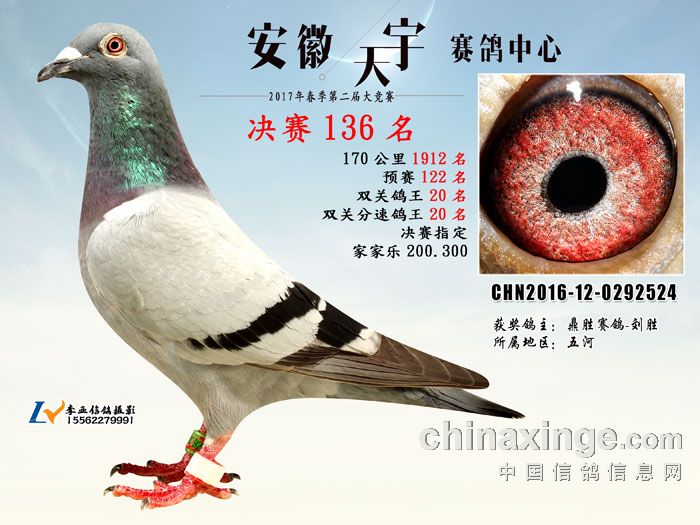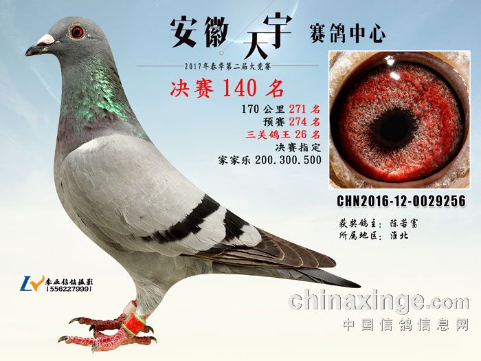 2017春安徽天宇赛鸽中心获奖鸽欣赏(136-140名)