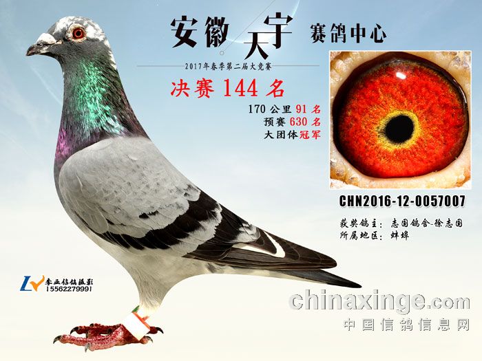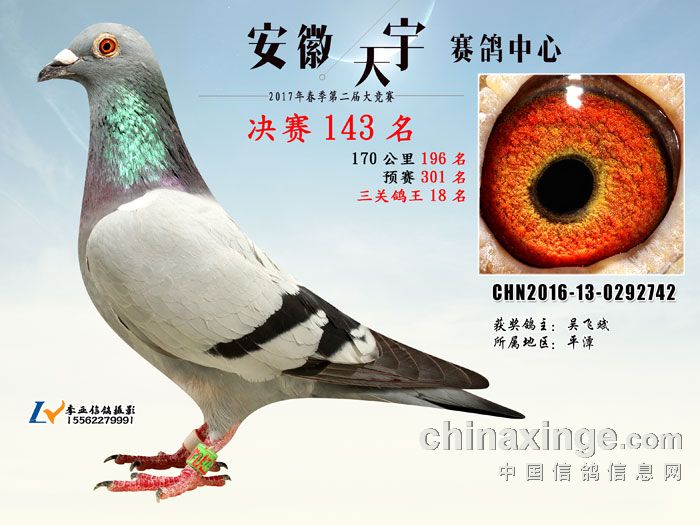 2017春安徽天宇赛鸽中心获奖鸽欣赏(141-145名)