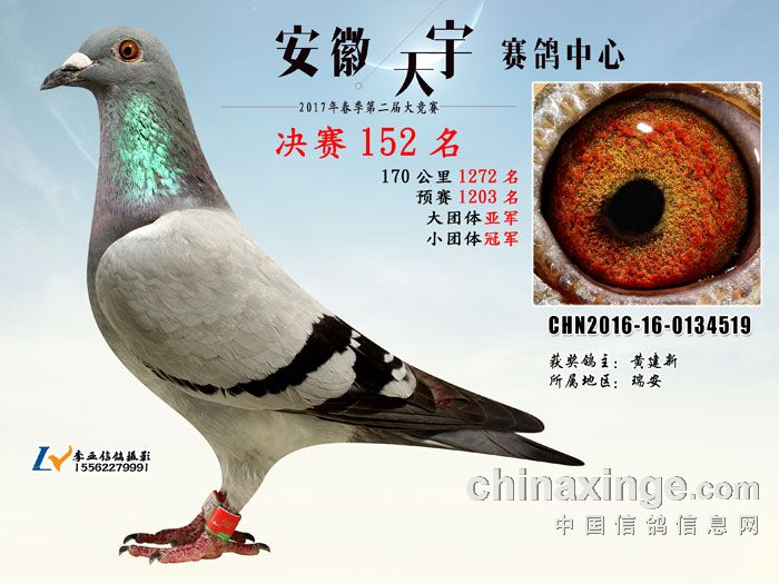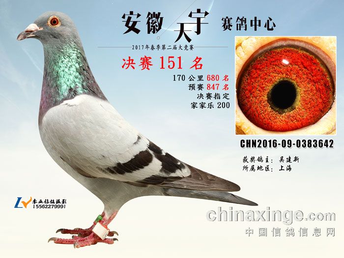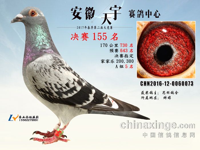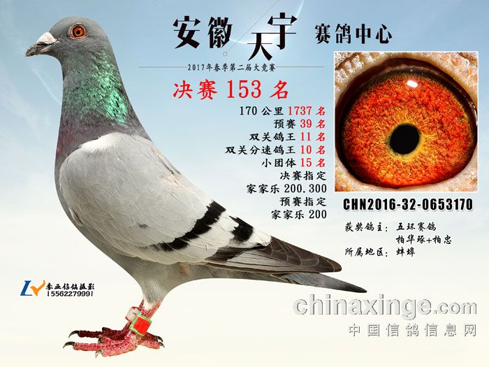 2017春安徽天宇赛鸽中心获奖鸽欣赏(151-155名)