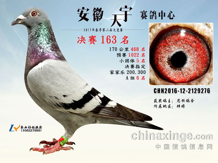 2017春安徽天宇赛鸽中心获奖鸽欣赏(161-165名)