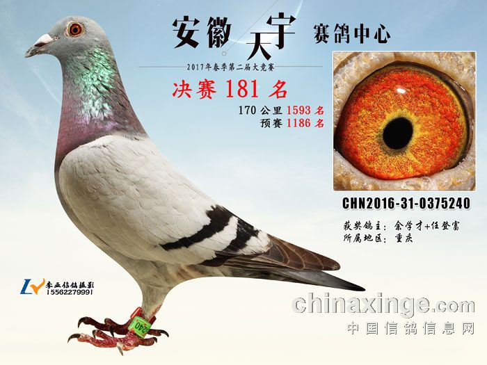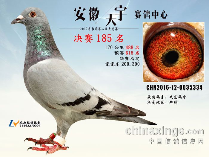 2017春安徽天宇赛鸽中心获奖鸽欣赏(181-185名)